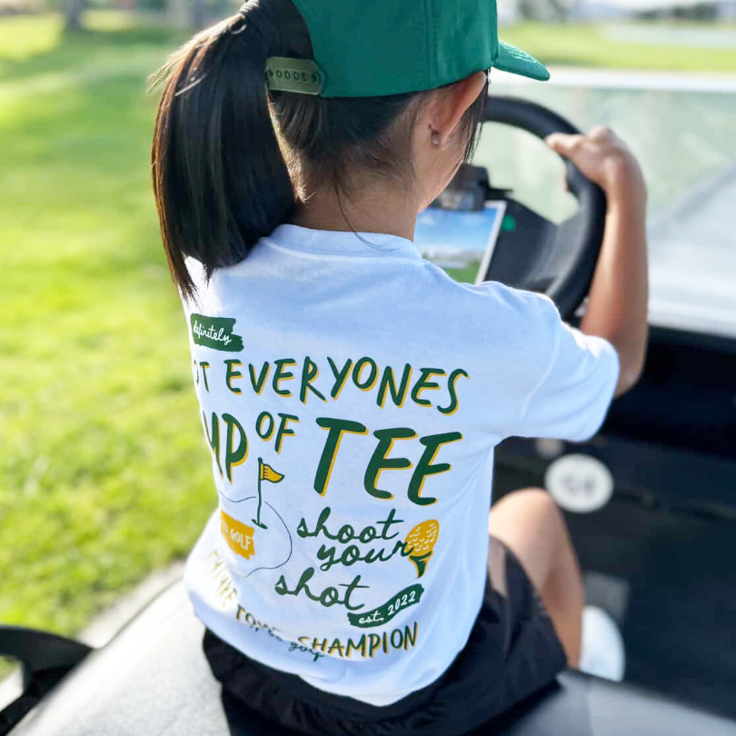 Keep your little golfer cool and comfortable on and off the course with our cotton poly blend toddler and youth shirt. Designed for all-day wear, this lightweight and breathable tee features a classic crew neck for easy on and off, along with short sleeves for unrestricted movement. Whether they’re swinging a club or just playing outside, this soft and stylish shirt is perfect for any young golf enthusiast.