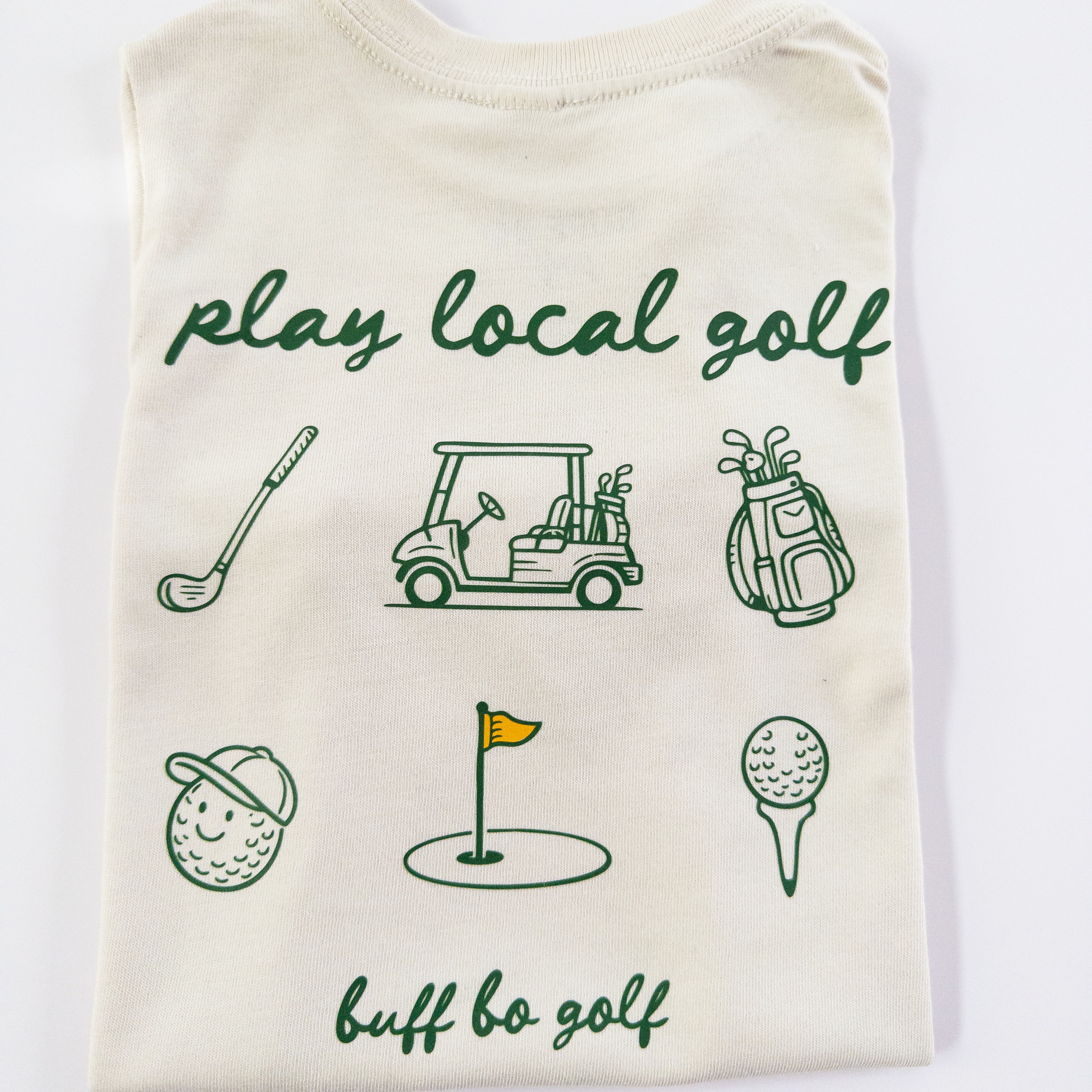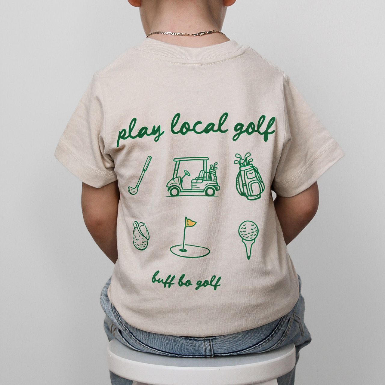 This Play Local Golf tee is a nod to community courses, weekend rounds, and growing the game close to home. Featuring a clean front flag detail and a playful illustrated back graphic, it keeps things simple while still making a statement. Designed for everyday wear, this shirt is comfortable, easy to layer, and built for kids who love being on the course—or just wish they were. A laid-back favorite for junior golfers and future ones in the making.