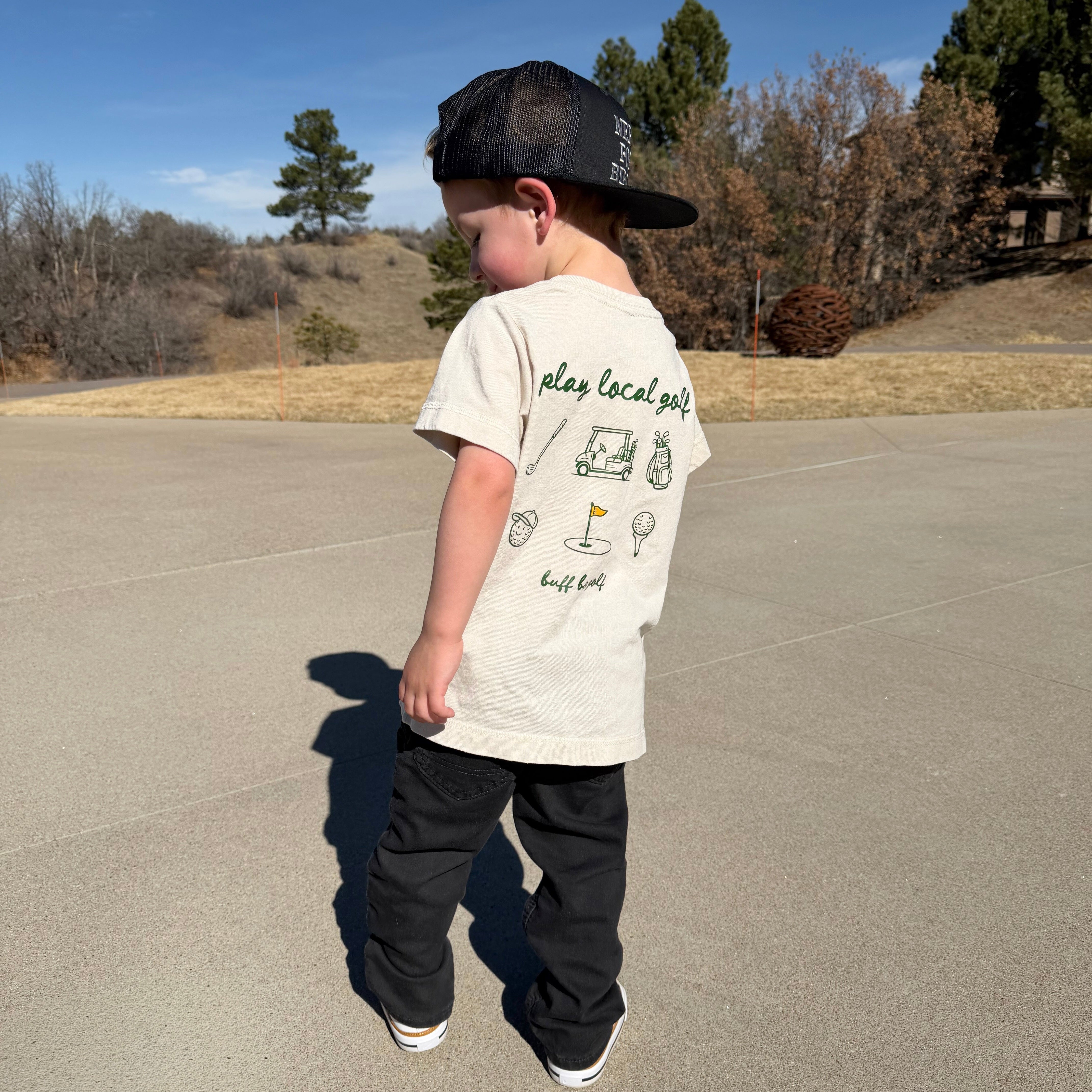 Keep your little golfer cool and comfortable on and off the course with our cotton poly blend toddler and youth shirt. Designed for all-day wear, this lightweight and breathable tee features a classic crew neck for easy on and off, along with short sleeves for unrestricted movement. Whether they’re swinging a club or just playing outside, this soft and stylish shirt is perfect for any young golf enthusiast.