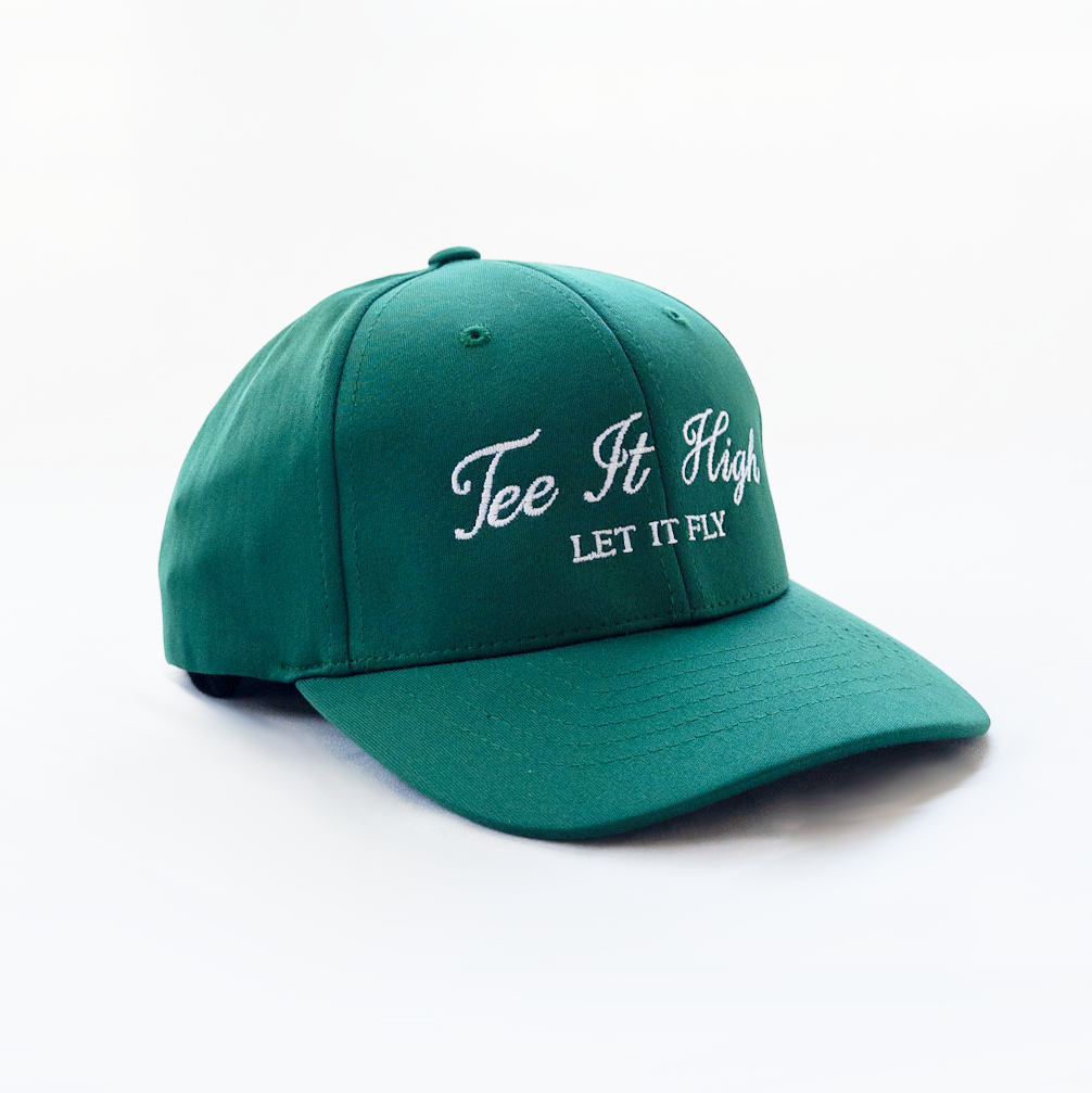 Let your young golfer tee it high and let it fly with this premium green golf hat, designed for style and performance on and off the course. Featuring bold white embroidered lettering, this mid-profile, 6-panel cap offers a structured fit with heavy buckram front panels for lasting shape. Built for the game, it’s crafted with moisture-wicking fabric and UV protection, keeping them cool and shielded from the sun during every round. Sewn eyelets provide extra breathability, while the adjustable snap-back closure ensures a perfect fit as they grow. Whether they're hitting the range or watching the pros, this hat is the ultimate way to show their love for the sport.